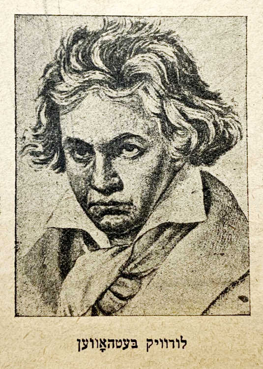 Ludwig van Beethoven, a figure emblematic of the peaks of Western culture, loomed large in the Yiddish imagination. From Yiddish translations of Ode to Joy by poets such as Y. L. Peretz and M. Rivesman, to biographies, novellas, poems, and stories written for children, there are ample testaments to Yiddish speaking Jewry's love for Beethoven.